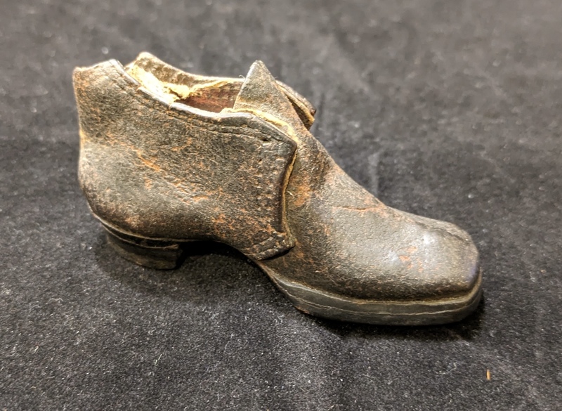 19th Century. New Hampshire origin. Hand carved black painted wooden crow decoy. Measures 7 1/2” long. All original with years of weathered wear.