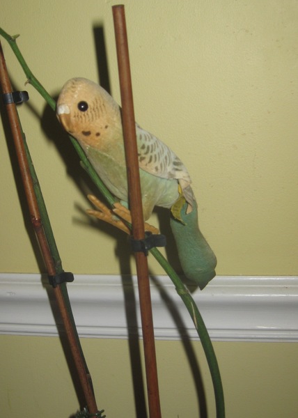 Cheerful organ-grinder's monkey in cotton shirt with covered buttons and cotton trousers; cotton stuffed body; black bead eyes, shoe feet; 9 1/2" long. SOLD. Yellow tiger, cotton stuffed body and pearl buttons; black embroidered face, whiskers and tail, 10" long. $95.00.