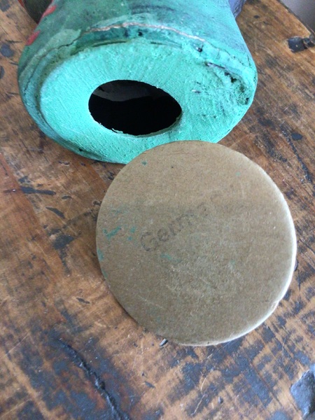 I have never seen one painted before. Bottom has something I can’t read imprinted. See pic. Nice patina and dry paint surface