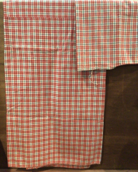 Approximately 51”x 72” duvet. 28 1/2” x 31”. Nice red , black, and white check fabric. Hand done button holes.