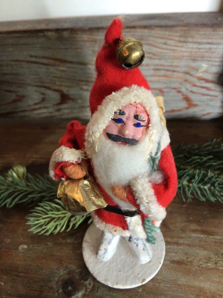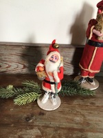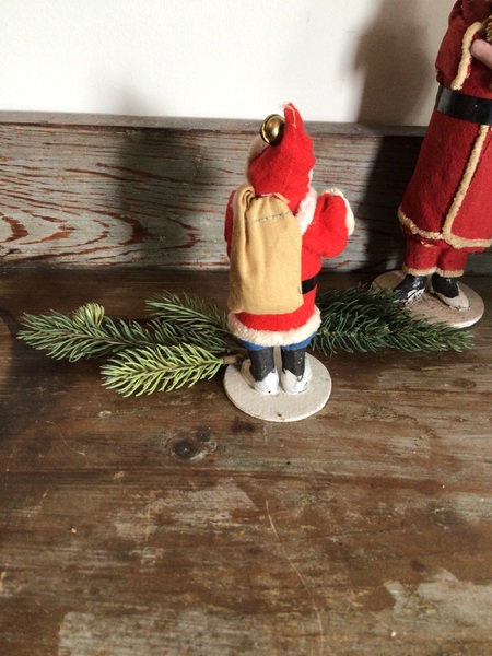 Larger is 5” tall. It has a faded to lavender velvet top and an original paper hanging tag. Smaller one is 4 1/2”. It has a navy blue top. Great bowl fillers