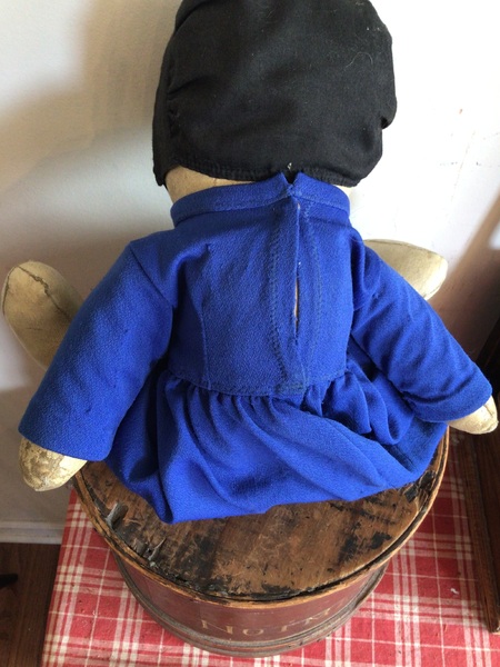 Rare blonde pair with large noses. 19 “and 20 “Hard pack stuffing. Nicely dressed.A little soiling due to age and use. A loose stitch on Andy’s eye. Really a nice pair!