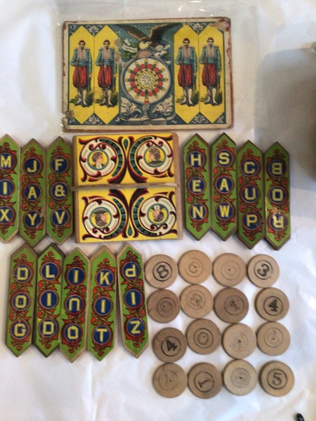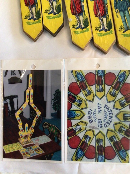 Nice graphics! No box! Some wear from play and age also there is photo of the game in the third picture one yellow piece of paper with building suggestions is missing
