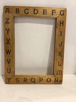 Nice German frame. Original logo. Would look great with an early sampler! Strips of wood may have been added to secure a picture. Wear from use and age.
