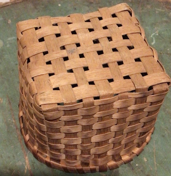 Approximately 4 1/2” x 7 “ . Great patina. Some minor staining as pictured. I believe this is a Taconic basket. Nice kick up in center. A few small breaks. Please look at pictures carefully.
