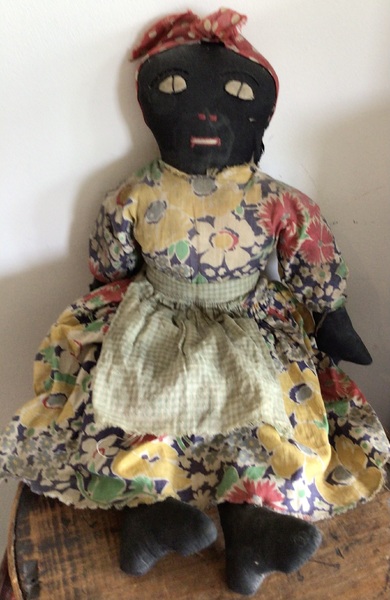 Wonderful lithographed faces with great graphics. Made by E.I. Horsman ( Babyland Rag Co.)12” All original clothing. Small tears and fraying on hands of African American side and face of Caucasian side. Holes and minor discoloration on dress. Sweet faces! See all pics.