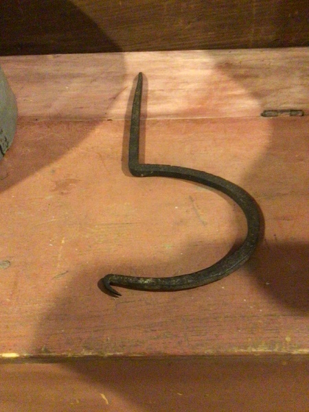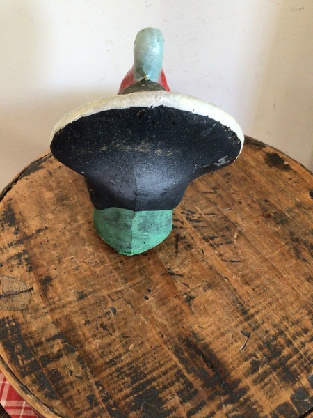 7” tall . Traces of red paint. Slight tilt to stick. Cleated bottom and complete hook