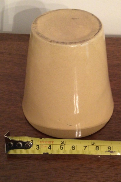 Cute Small size. 3” tall almost 4” across the top. Nice age!
