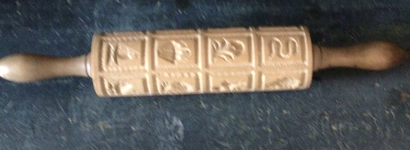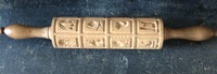 Wonderful Victorian glass rolling pin. These are not decals but fired under the glaze. Pictures of birds, horsemen, Highlanders, and my favorite an elephant. 13” x approximately 2 1/2”.