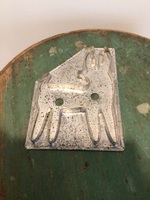 One flat back, one handled. Bear has great patina. It is missing a small area of solder as in pic #3. Smome crimping on edge. Lady has better patina on back then front. Being sold as shown.