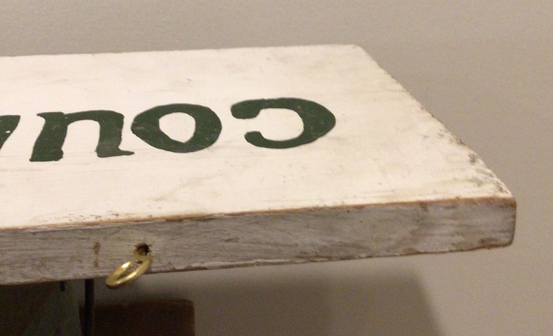 5/8” x 7 1/2” x 28 1/2” Wood double sided roadside sign. White and green paint on one side white and black on other. See pics