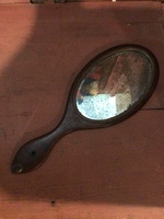 Nice early mirror. Possibly Shaker. Nice patina. Wear as expected with age. One white finger print on handle. Crazed mirror