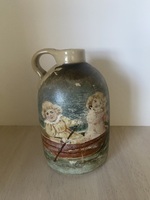 Spring loaded surprise box of composition clown pop up. Amusing and in good condition. Box is 4 3/4”