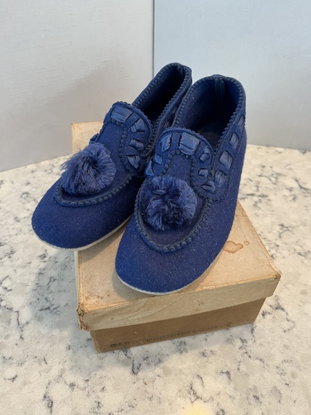 Victorian Sapphire Blue Felted Wool Slippers Boxed