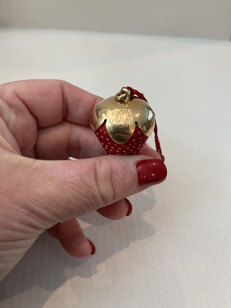 Not something you see every day, a solid 14k yellow gold topped, strawberry sewing emery, on its original silk cord. It is marked 14k and also numbered “X1061.” There is an impressed “anchor” mark, as well. On one of the gold strawberry petals, an early scripted monogram has been engraved, I believe it reads “JMB.” It is sooo fancy, I could be wrong on the initials. This emery measures approximately 1 3/4” long, not counting the silk cord. There is a gold jump ring attached to the gold cap and this strawberry could be worn on a chain/necklace. I can’t give a weight on the amount of gold but it is solid, very well made and in excellent vintage condition. A must have for any early sewing collection! $695 + $10 ship. PayPal or check.