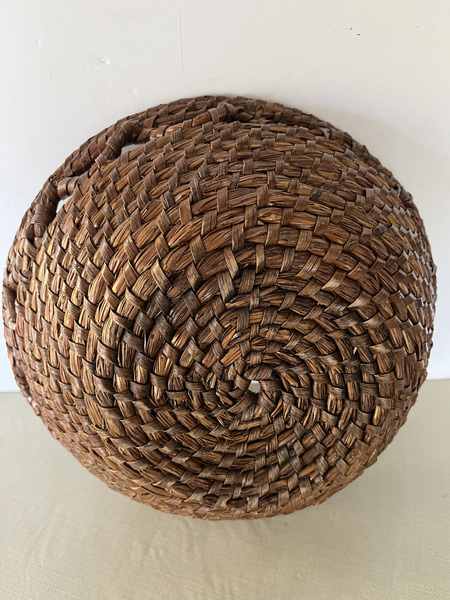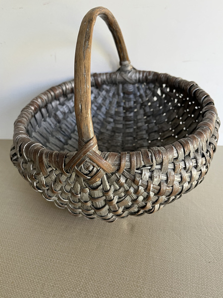 This finely-woven melon basket is in excellent condition! There are no breaks or missing splints. It measures 7 3/4" x 7 1/4" x 7' tall, including the handle.