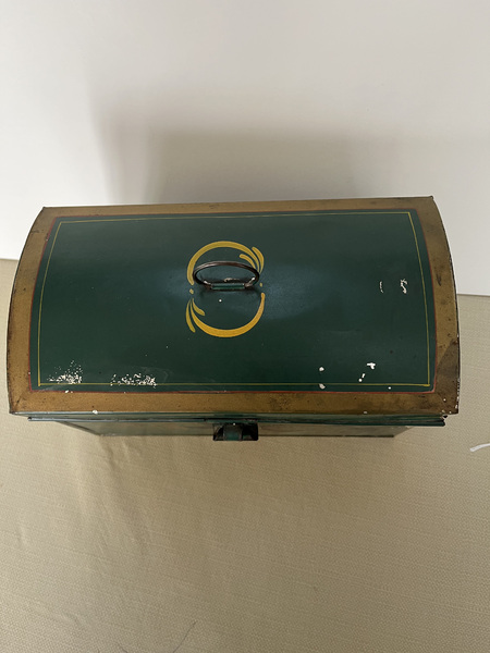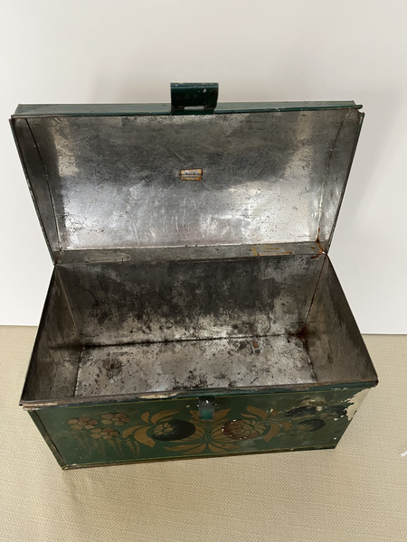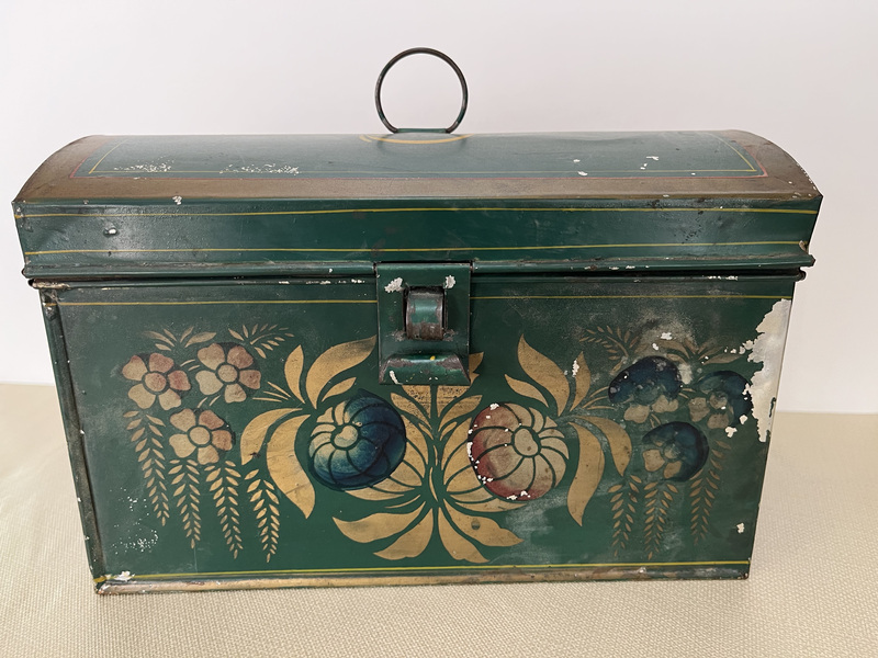 Green domed document box ca.1860-1890. Original floral decoration on original green ground. 8 3/4” x 5” x 5 3/4”. Some paint loss on one corner and a few minor areas. Nice condition.
