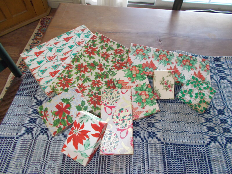 Offering 11 Christmas boxes, dating back to 1940's or so. Beautiful condition. Measuring 8"x10"x3/4" down to 3"x2"x1".
