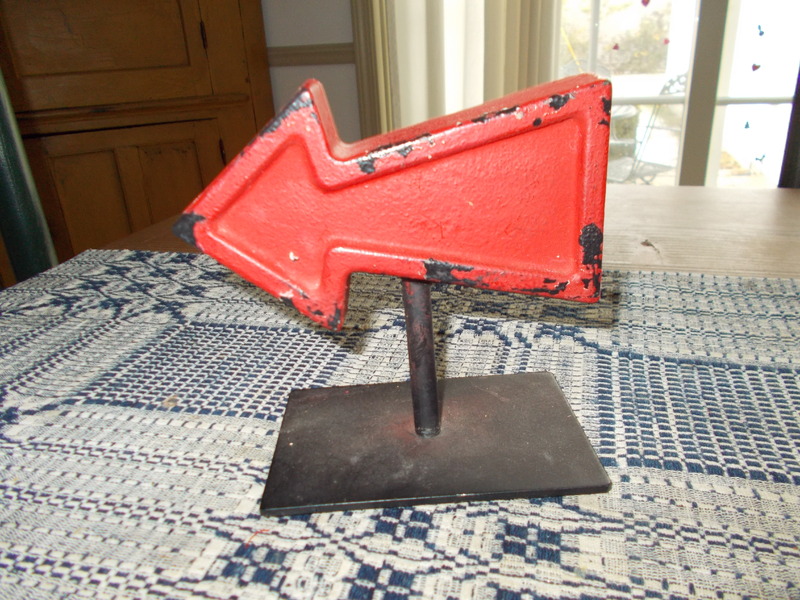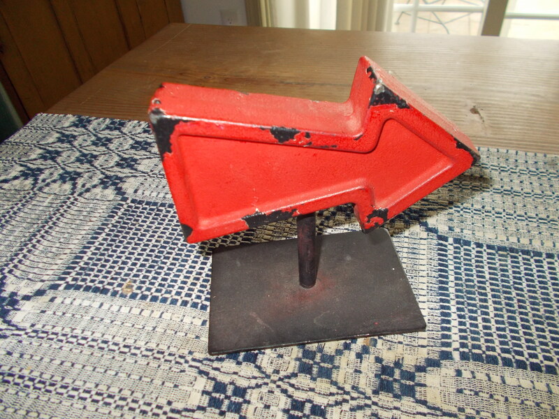 Offering a heavy arrow, mounted on a metal stand. Measures 6" wide x 5-1/2" tall. Weighs over 3 lbs.