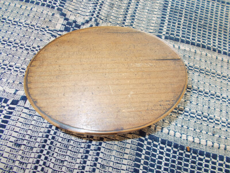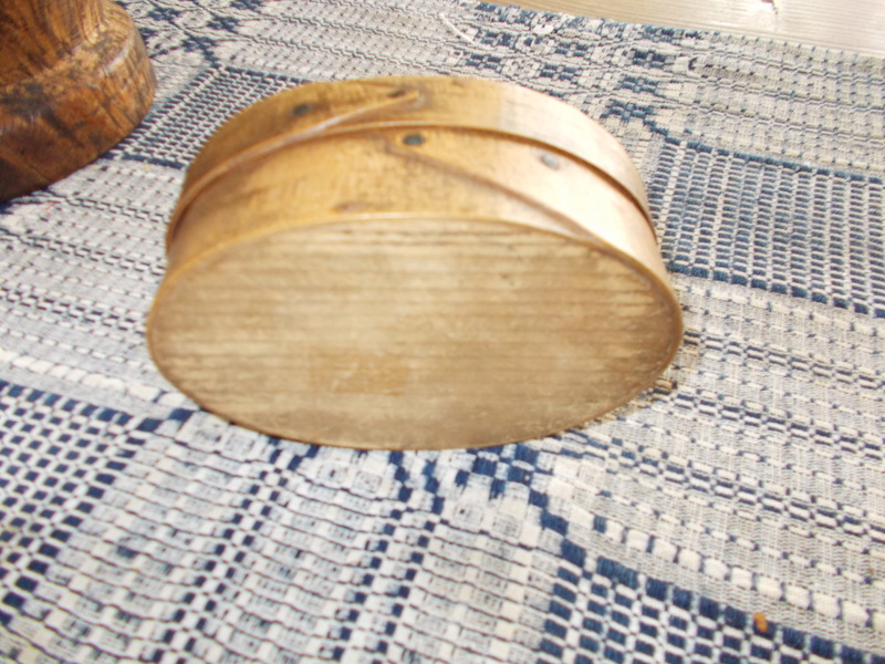 Offering an oval pantry perhaps SHAKER, measuring 5" X 3-1/2" 1-3/4" Tall.. Iron nailed fingers and wooden pegs. Great condition.