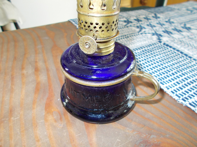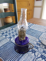 Offering a delightful little "chamberstick" with ribbed flass font, and cobalt blue base. Dated 1877. Excellent condition