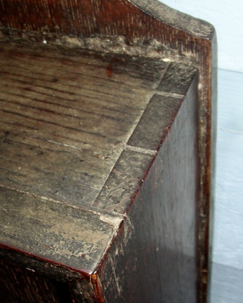 A c. 1840 Miniature Grain Painted Blanket Chest with turned feet, probably from Pennsylvania. 19” x 9 ½” x 10 ¼” (high), the box retains its original grained surface. It is dovetailed, with square nails (on the bottom mostly), molded top and bottom and original hinges. The hardware also appears to be original (but I’m not sure). There is no till, but it has 4 turned legs. Box is clean and ready to use. It is in very fine condition with no splits or cracks and other than some bumping on the surface, there are no major scars. Postage will be $50 (or less, depending on where the buyer lives).