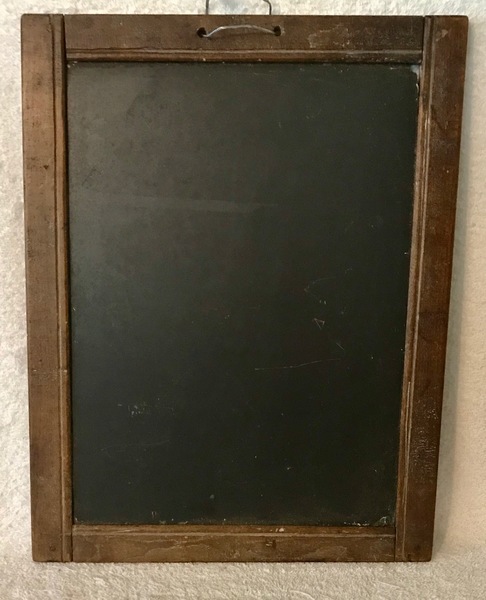 Another necessity if you wind up having to Home School the kids this fall: a c. 1900 Slate Chalk Board, small enough to move around easily but large enough to display numerous multiplication tables (Ooops, do they still teach multiplication with tables in elementary schools these days?) The Slate is framed in a period, molded wood frame, which retains its original surface and color, and it measures 15 ½” x 11 ¾”. Generally very good condition: there are some small corner chips (probably from mounting in the frame) in 2 corners and a significantly larger surface break in a 3rd corner. Otherwise the Board is in good condition. You’ll have to supply your own chalk, but a great accessory for reminder notes like “Classes Start 8 a.m.” or “Quiz