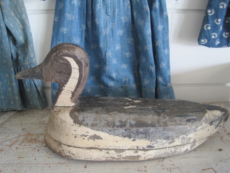ANTIQUE, WOOD, ORIGINAL PAINT, FOLK ART, DUCK DECOY, GREY, WHITE AND BLACK, WONDERFUL PRIMITIVE, GREAT AMERICAN FIND! This Antique, Original Paint, Wood Duck Decoy is Perfect for Display! APPROX: length is 14 1/8"; head height is 7" and width is 4 7/8" CONDITION: scratches, stains, chips, paint loss, dents, along with wear and use that is expected with age
