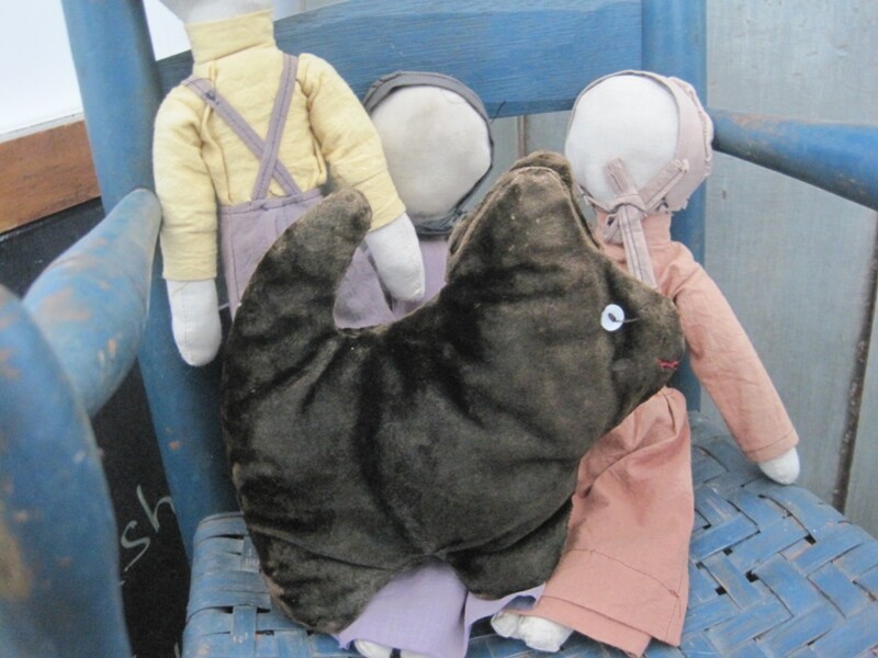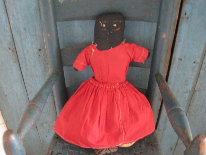 ANTIQUE, OHIO AMISH, RAG DOLL, HAND MADE, BUTTON JOINTED ARMS AND LEGS, SOFT STUFFED, PRIMITIVE AMERICAN COUNTRY FIND! I bought a very large collection of Pennsylvania and Ohio Amish, Dolls, Stuffed Toys, Long Stockings, Mittens, Pincushions, etc. Slowly I will be listing them on Ebay when I have time. APPROX: height is 11 1/2" CONDITION: spots, fading, along with wear and use that is expected with age