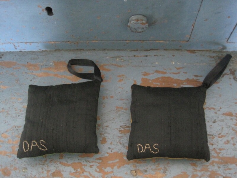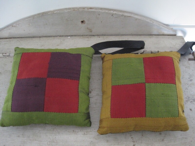 TWO, ANTIQUE, MATCHING, PENNSYLVANIA AMISH, PINCUSHIONS, SIGNED INITIALS "DAS", WONDERFUL HAND MADE, PRIMITIVE AMERICAN COUNTRY FIND! I bought a very large collection of Pennsylvania and Ohio Amish, Dolls, Stuffed Toys, Long Stockings, Mittens, Pincushions, etc. Slowly I will be listing them on Ebay when I have time. APPROX: 4" by 3 7/8" CONDITION: spots, fading, pinholes, along with wear and use that is expected with age