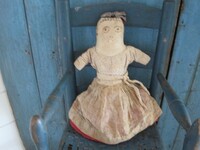 ANTIQUE, PENNSYLVANIA AMISH, CLOTH STUMP DOLL, NO ARMS OR LEGS, PROBABLY A CHURCH DOLL?. HAND MADE, PRIMITIVE AMERICAN COUNTRY FIND! I bought a very large collection of Pennsylvania and Ohio Amish, Dolls, Stuffed Toys, Long Stockings, Mittens, Pincushions, etc. Slowly I will be listing them on Ebay when I have time. APPROX: height is 8" CONDITION: spots, fading, along with wear and use that is expected with age