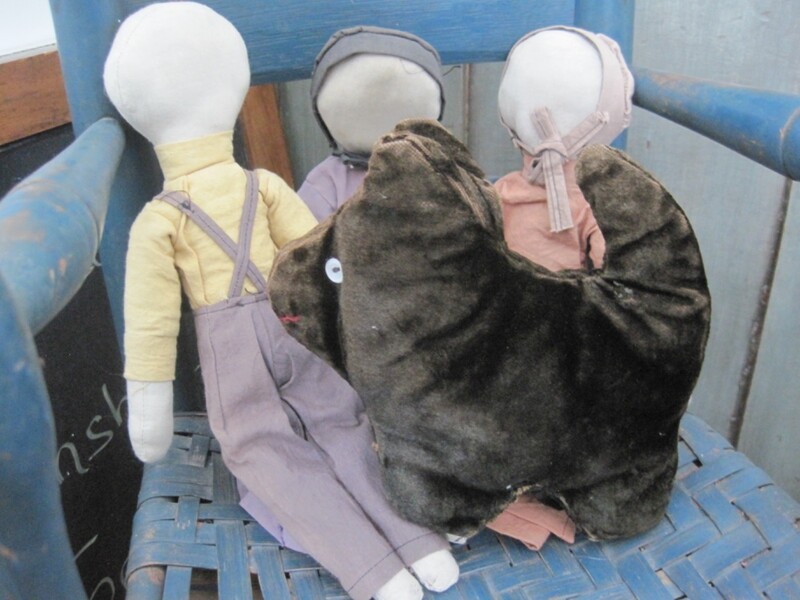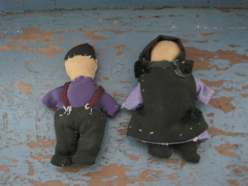 TWO VINTAGE, OHIO AMISH, LITTLE CLOTH CHURCH RAG DOLLS, BOY AND A GIRL, HAND MADE, PRIMITIVE AMERICAN COUNTRY FIND! I bought a very large collection of Pennsylvania and Ohio Amish, Dolls, Stuffed Toys, Long Stockings, Mittens, Pincushions, etc. Slowly I will be listing them on Ebay when I have time. APPROX: boy height is 4 1/4" and the girl's height is 4" CONDITION: spots, fading, along with wear and use that is expected with age