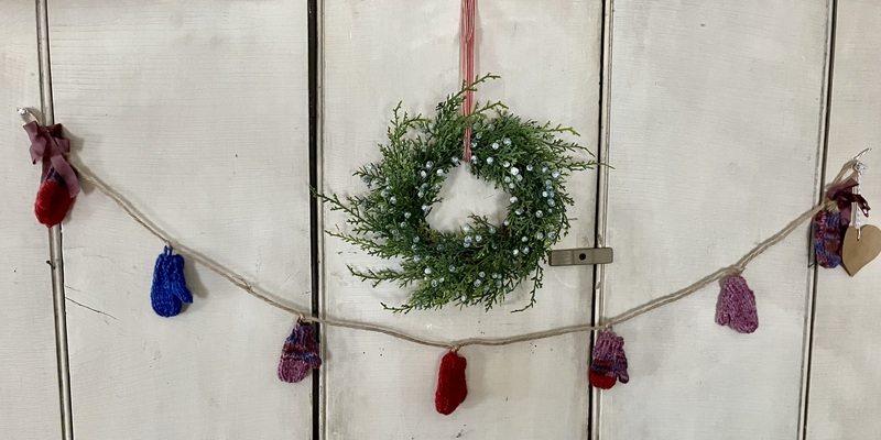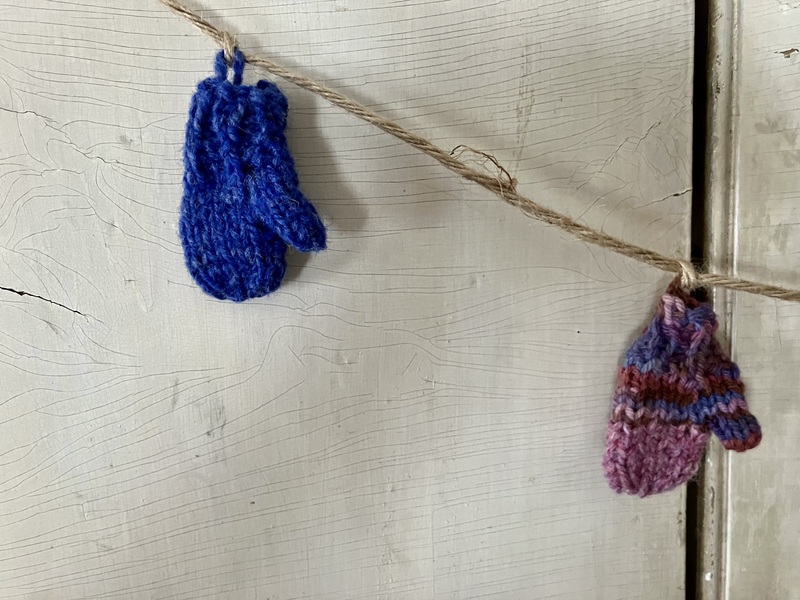 I have 5 of these, designed and handmade by me, in slightly varying lengths, each with 7 mittens in wool from sheep in Vermont. They are perfect for the winter months. 2 photos.