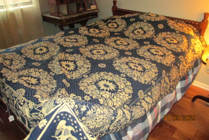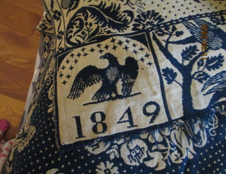 Measures about 70" L by 691/2" approx.Beautiful condition with some bottom fringe worn.Center seam has a slight separation which I can repair if desired.Great intense colors, with dated eagle corner. Probably NY made. 2026 will be our 250th year birthday in the USA.