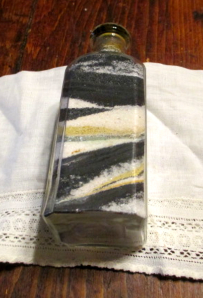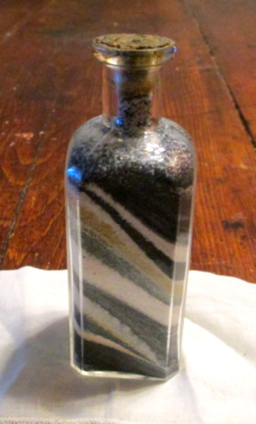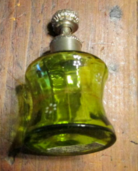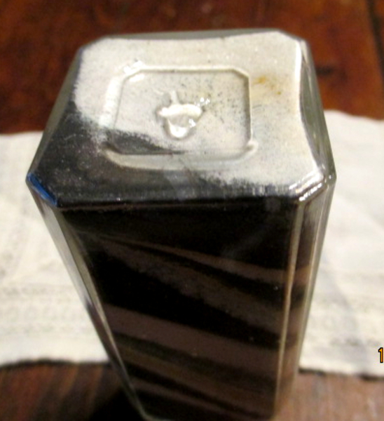 Measures about 4 3/4 " tall.Bottle most likely from the 1930-1940. The top of the bottle is sealed with a waxy substance.No issues.