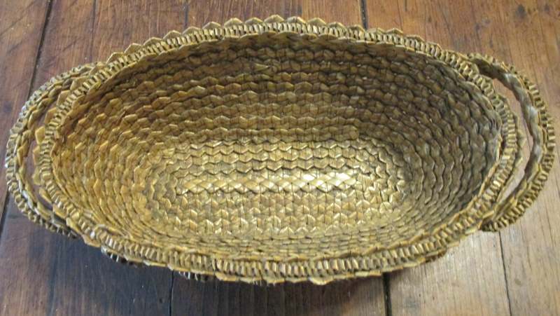 Measures 101/2" long and 1 1/4" high. No issues.The start resembles some Native American baskets. Folky. Ex Michigan dealer, Alice Dewey.