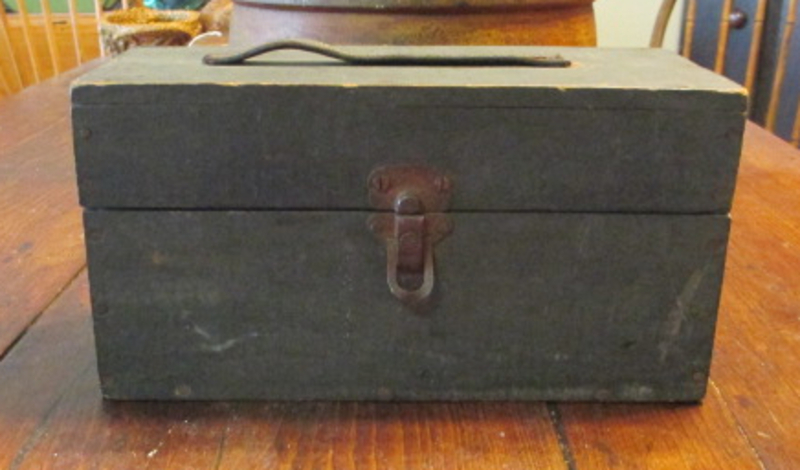 Late 1800's.Measures 11"long, 6 1/4" high, and 3 3/4" deep.Has an interior tray for pens.Interior lock mechanism is missing.Small raised whitish wood circle on the bottom.Nice box for the money.