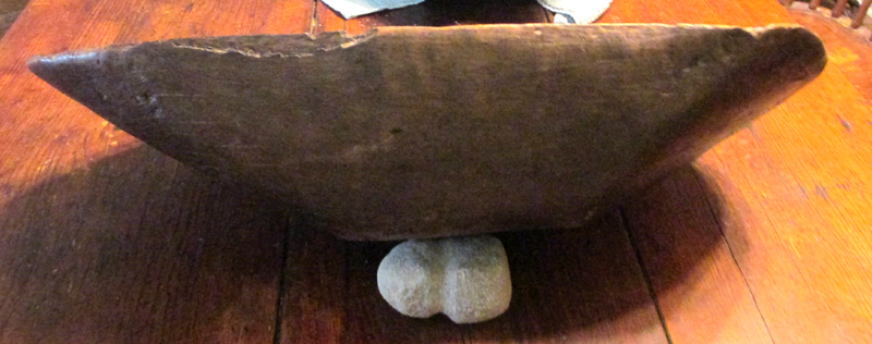Measures 25" long x 11 " wide ,Weight 10 lbs.Possibly oak or chestnut.Stress grains on the inside and chips on the handles. 1860's.Shipping will be extra.Lovely dark brown