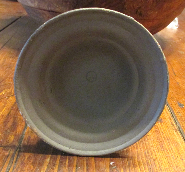 About 4" high.Hand cut staves fastened with tacked tin bands.No stains or issues.Gap between 2 staves is where the rim and based were fastened to hold the staves.Never used.There were 3 sizes of these buckets.Made in Connecticut.