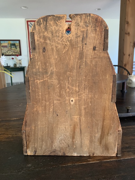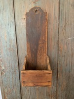 Circa 1840 wall box. Could be a 'make do' back. Early cut nail construction throughout. A strip of wood has been applied to the back for reinforcement. 11 1/2 " w X 7 1/2 " D x 10 1/2 " H.