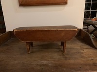 Small, early stained stool with a nice patina. It measures 14 1/2" L. by 5 1/2" W. by 5 3/4"T. There are tiny cut nails throughout construction.