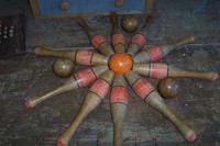 A complete set of the toy...ten pin....with 4 balls...The colors are still bright and the pins are in great condition.