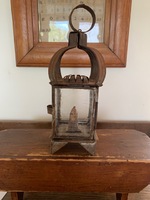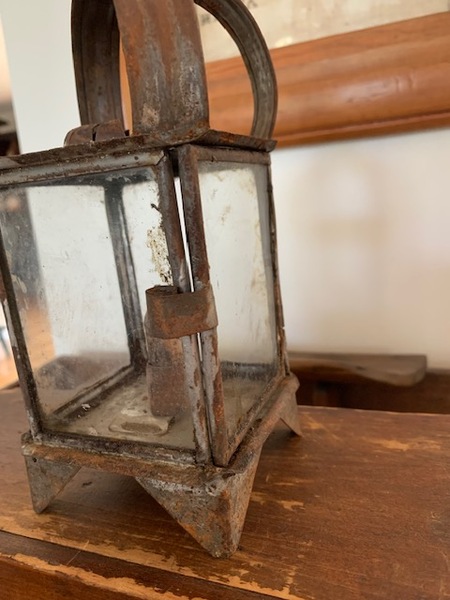 Nice early, tin lantern in "as is" condition. The solder has come off the bottom hinge on the door but it still holds securely. Some rust.