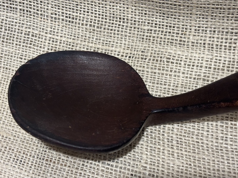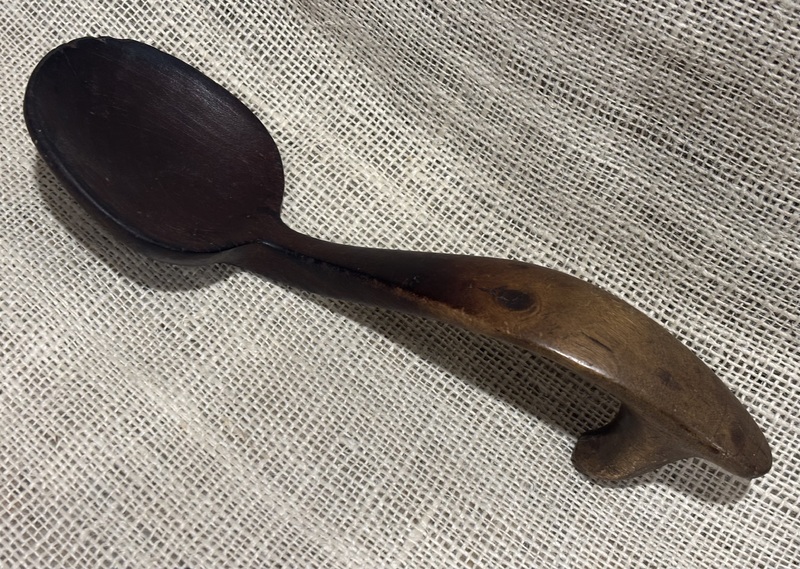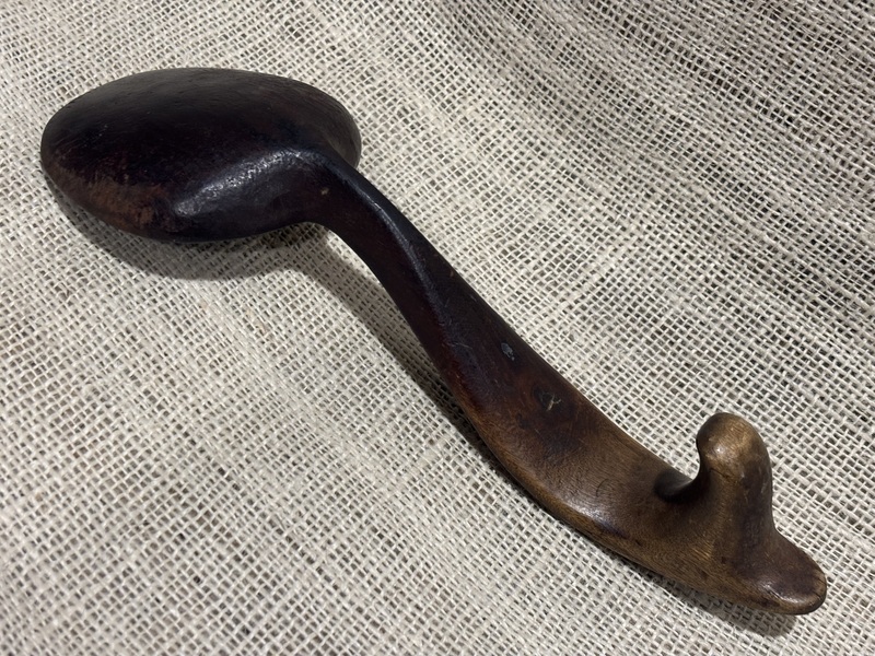 Wonderful early Treen ladle with horses head effigy at handles end. Great patina, measures 10” long.