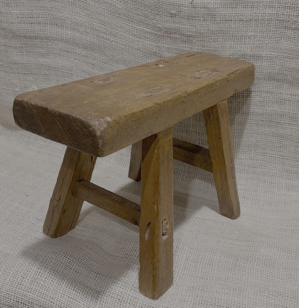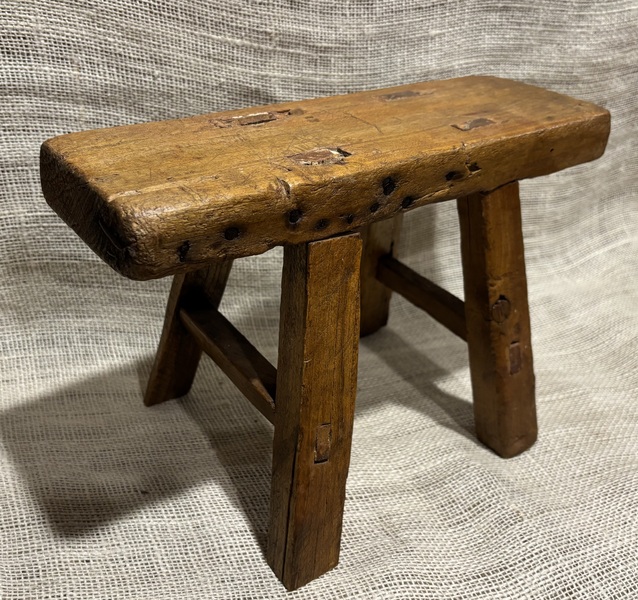 Sweet primitive cricket stool. Attic surface never painted. Early 19th century mortised and tenon construction. Measures 12 3/4 inches wide, 4 1/4 inches deep (top), 8 1/8 inches high.