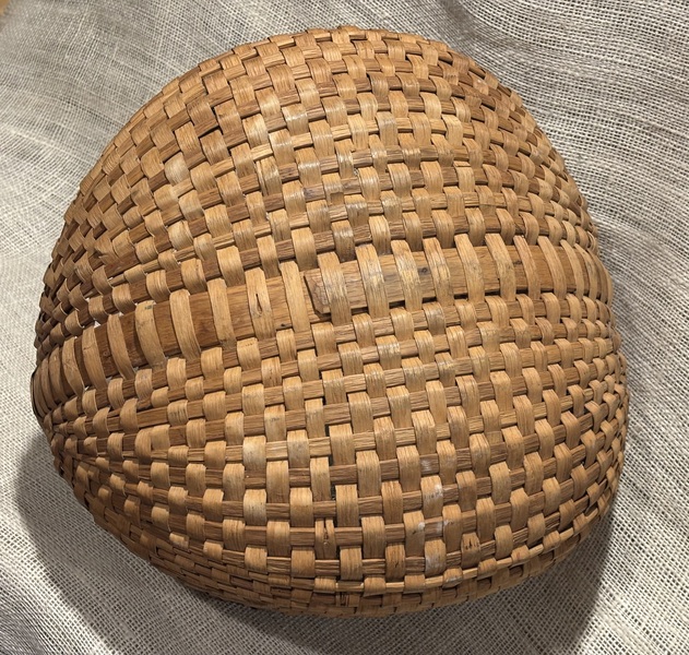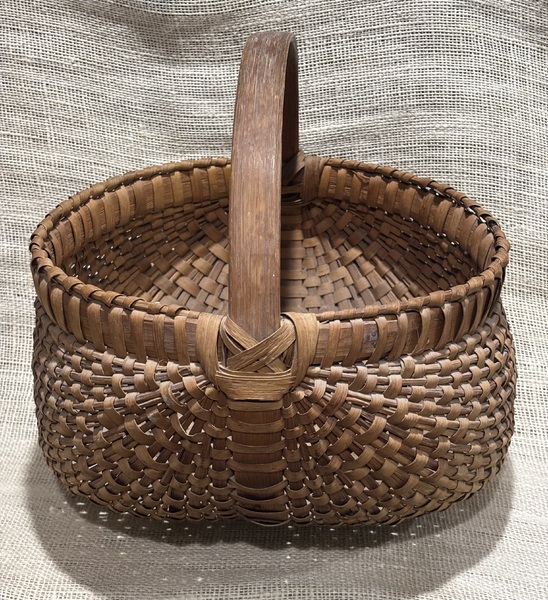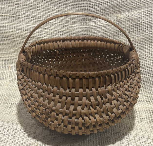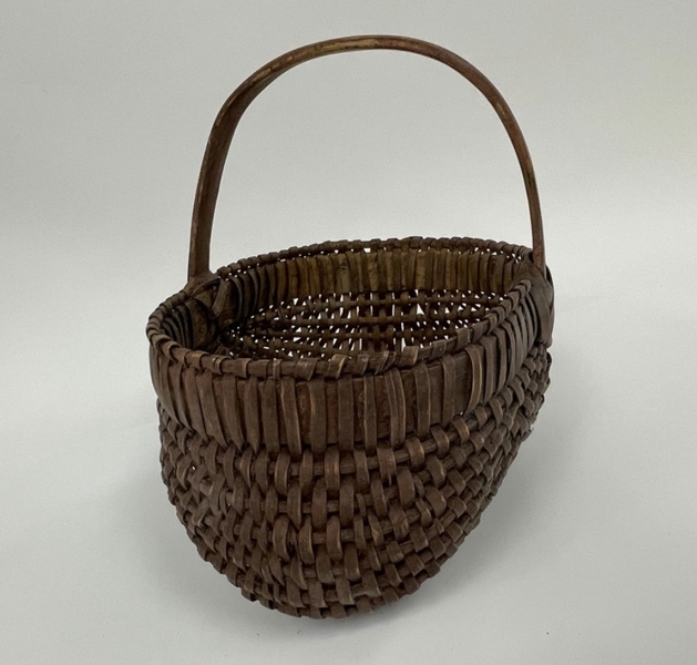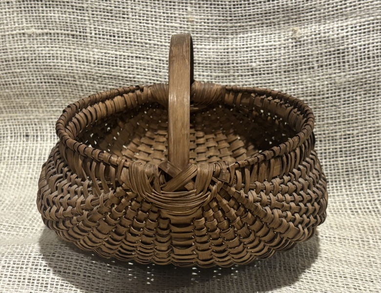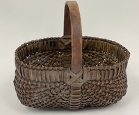 Sweet early small buttocks basket. New England, 19th century. Nice patina, minimal minor breaks. More photos on request. Measures 7" x 5 1/2" x 5" high.