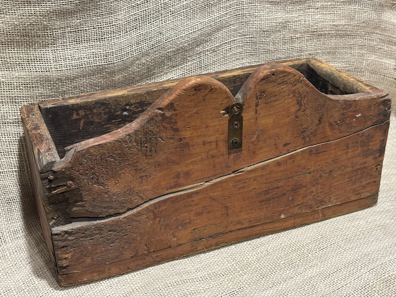 Wonderful late 18th/early 19th century New England wall box. Remnants of paint-black over red, square nail construction. Great primitive look! As seen in photos shows its age with crack and some loss. More photos on request of these areas. Measures 15" wide, 6 1/2" deep, 7 3/4' high.