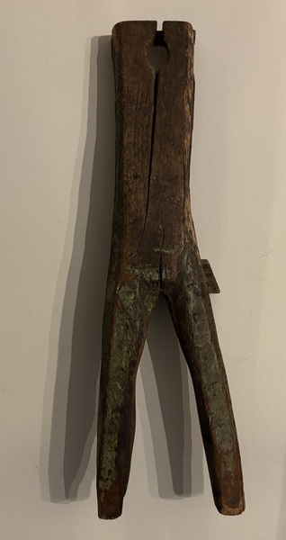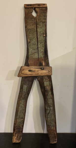 Early large painted boot jack. Early forged nails, wonderful worn green painted surface. Great primitive look! Measures 24” long, 7 1/4” wide.