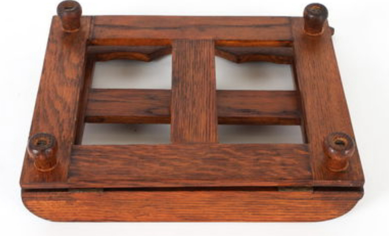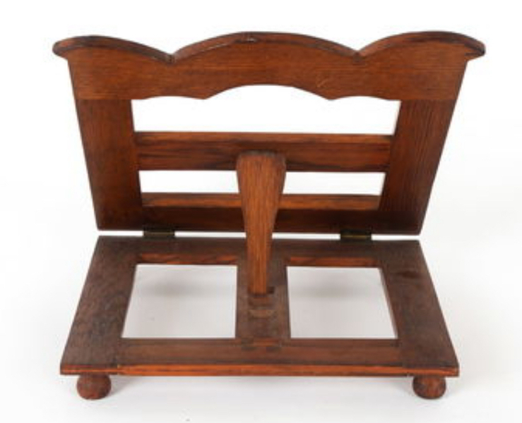 Rare bookstand. Late 19th, early 20th century oak Arts and Craft bookstand. Mortise and tenon and peg construction. Fine quality workmanship. In overall excellent condition. Measures 12" high, 13" wide.