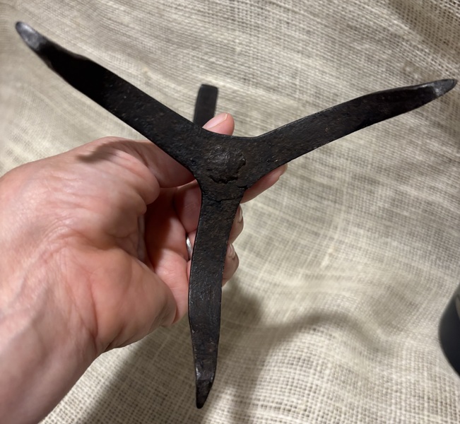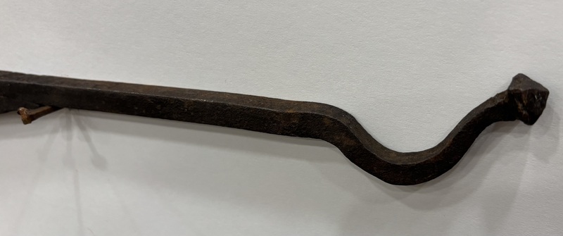 Wonderful 19th c. Decorative iron crane. Measures 21 1/4” long, 8” wide.
